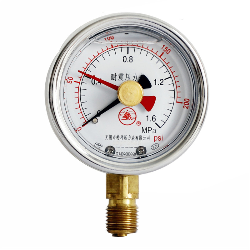 記憶型壓力表是由通用型壓力表(普通壓力表,耐震壓力表,不銹鋼壓力表等)與一個記憶裝置配接組成。記憶性壓力表的特點是可以在無人的情況下,如實記錄下測量現(xiàn)場所發(fā)生的最高壓力值。