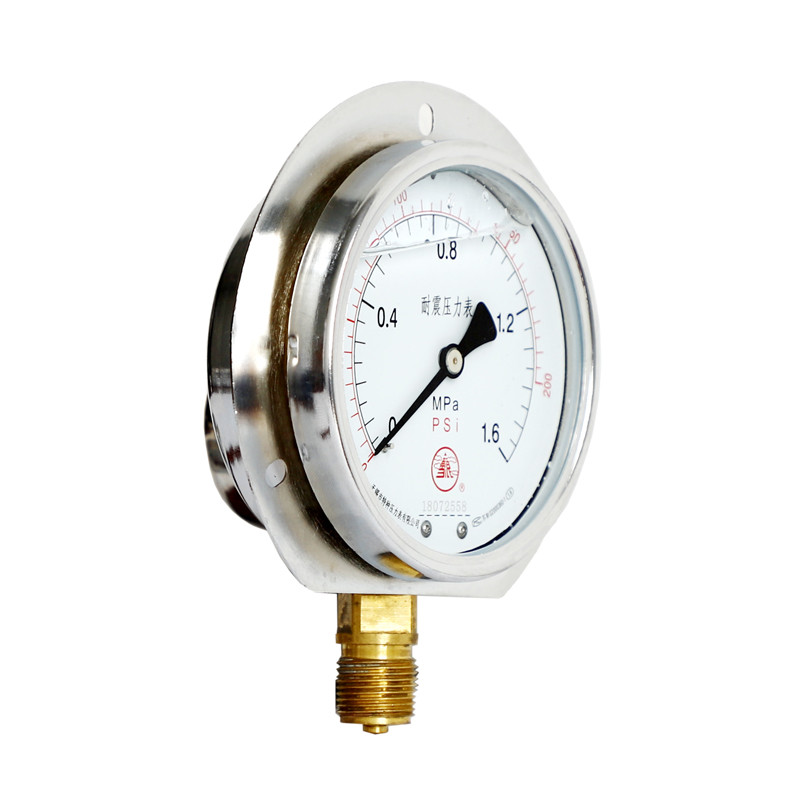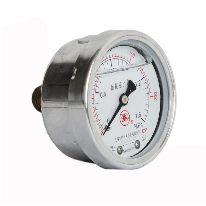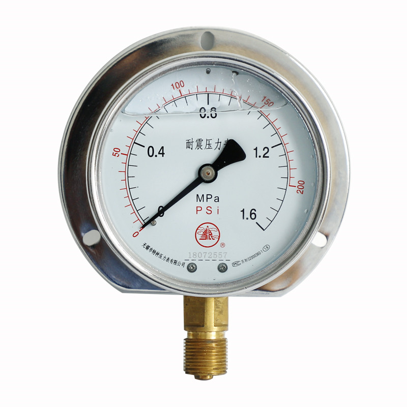 耐震壓力表是在普通壓力表的基礎(chǔ)上,表殼為全密閉型結(jié)構(gòu),內(nèi)部填充阻尼液(一般為甘油或者硅油)并加裝緩沖機構(gòu),減輕環(huán)境劇烈振動及介質(zhì)脈沖對儀表示值的影響,耐震型壓力表指示穩(wěn)定清晰。廣泛應(yīng)用于液壓機械、石油、化工、冶金、礦山機械、電力設(shè)備等部門,測量對銅和銅合金無腐蝕性介質(zhì)的壓力。使用壽命長,是普通壓力表的替代產(chǎn)品,防護等級IP65。